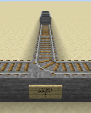 A few sign systems support remote control: the ability to control trains by name. You then use the [train <name>] format, or the shorter alias [t <name>]. Remotely controlled signs only respond to redstone changes, thus where you place them is not important. The signs that support this feature are listed in the Types table down below.